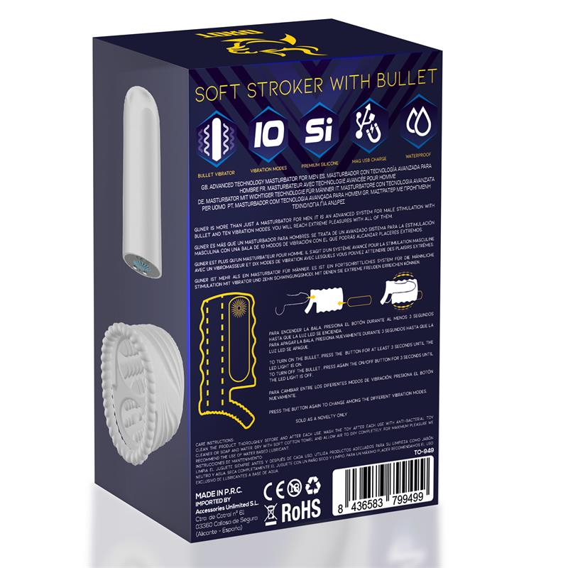 Gunner is a male masturbator for men who don`t conform. This masturbator has been manufactured with Premium silicone, which makes it flexible and super comfortable. Along with the masturbator sleeve you will find a vibrating bullet, which has 10 vibration functions so you can try to find the one that best suits you. Along with this and that it is rechargeable by magnetic USB you will be able to reach incredible levels of pleasure in a very short time.